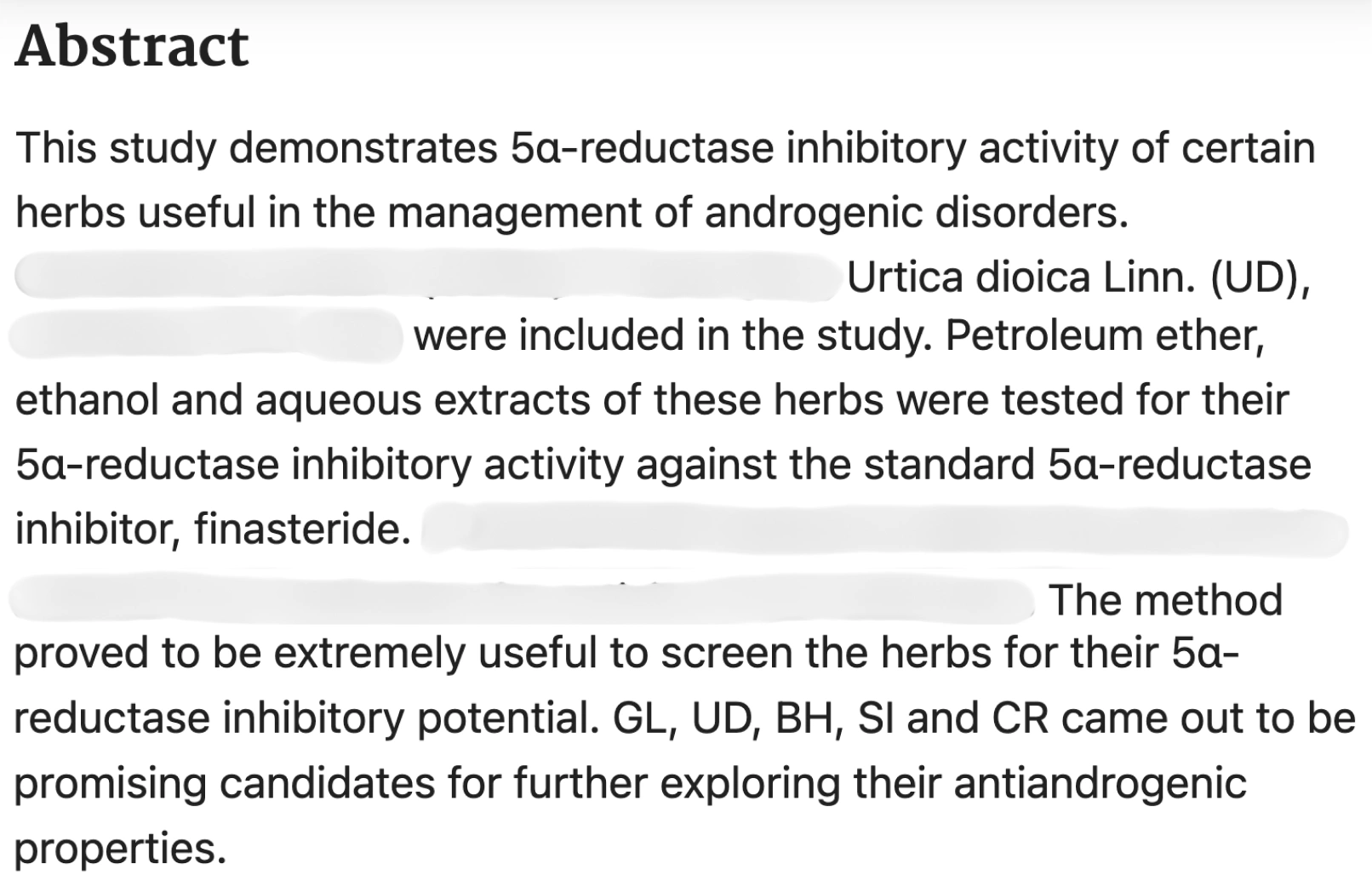 In clinical trials with over 4,061 men and women, Stinging Nettle was shown to be as effective as leading FDA-approved hair and hormone drugs—Finasteride, Dutasteride, and Spironolactone—but without the side effects.