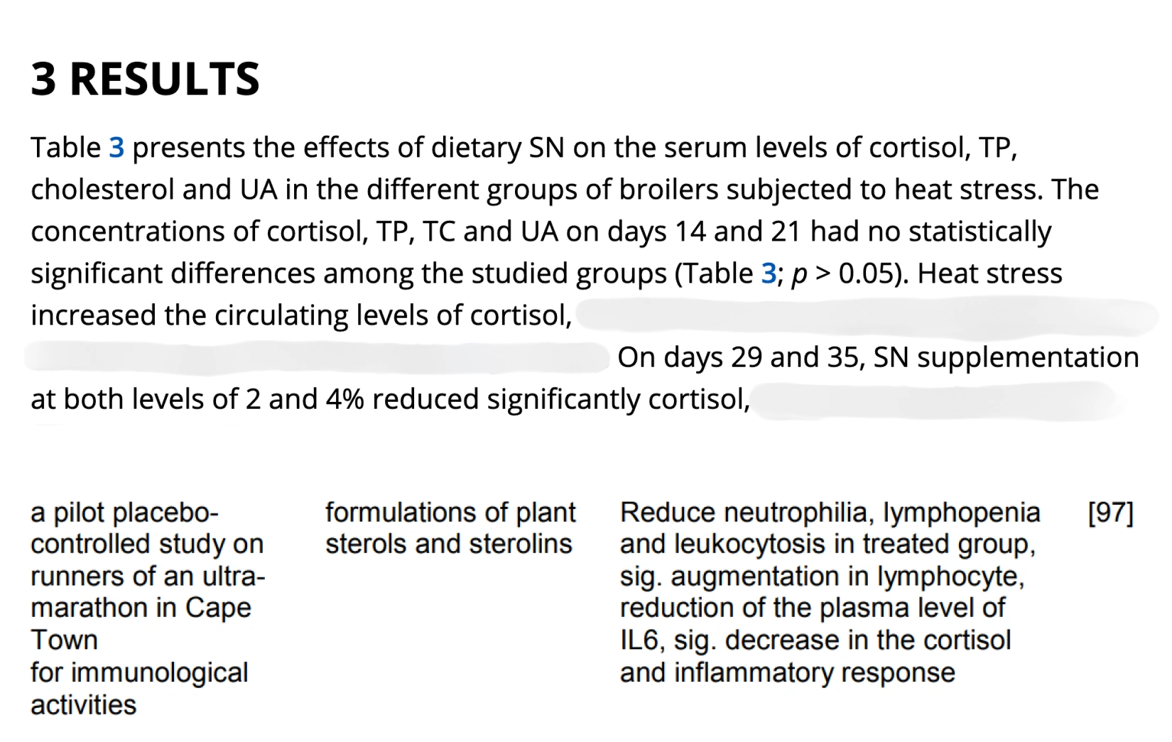 Mirsaiidi Farahani M, Hosseinian SA. Effects of dietary stinging nettle (Urtica dioica) on hormone stress and selected serum biochemical parameters of broilers subjected to chronic heat stress. Vet Med Sci. 2022 Mar;8(2):660-667; Bouic PJ, et al. The effects of B-sitosterol (BSS) and B-sitosterol glucoside (BSSG) mixture on selected immune parameters of marathon runners: inhibition of post marathon immune suppression and inflammation. Int J Sports Med. 1999 May;20(4):258-62.