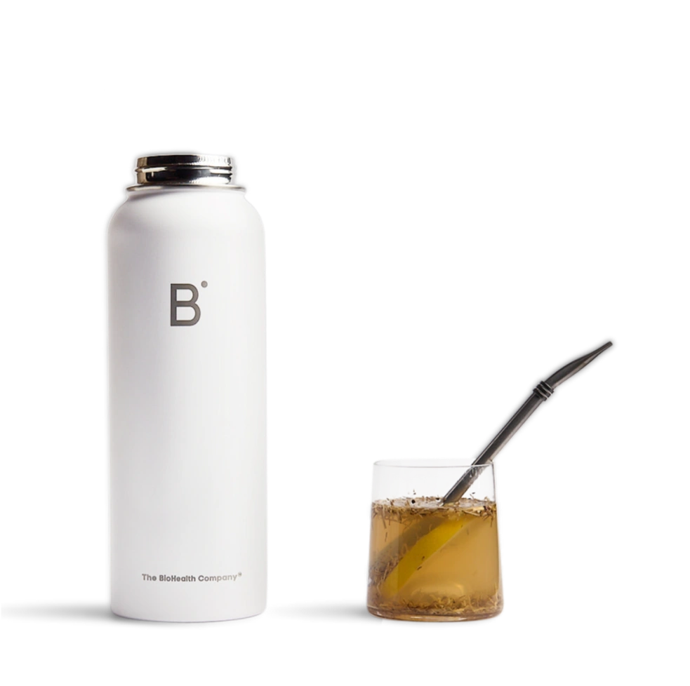 After steeping our BioHealth™ herbs in hot water for 1 hour, simply strain into a cup and, if any herbs remain, use the stainless steel straw for an easy sip without residue.